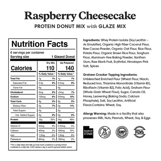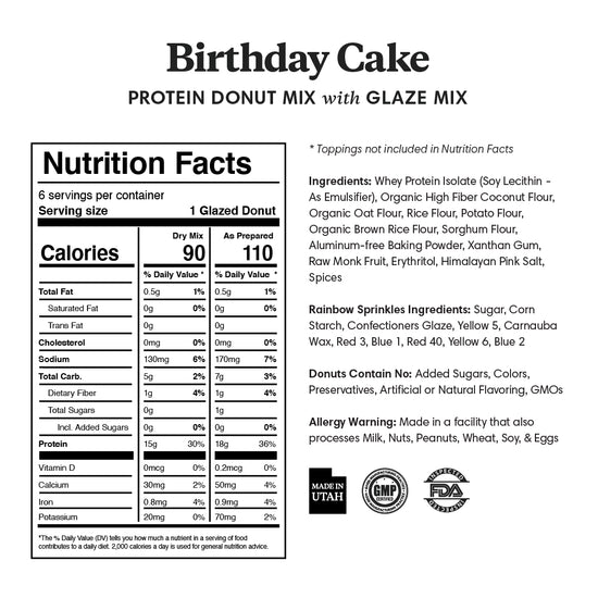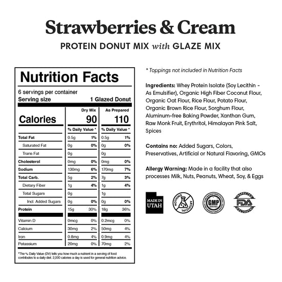 Gone are the ancient times of protein bars & chicken being your main (& sometimes only) options to get the protein your body needs. Now you have over 15 different Gourmet Protein Donut Mix flavors to choose from, each having anywhere from 15g — 27g protein per donut (based on the flavor chosen) to help you reach your daily macros. The best part? You're getting this protein from delicious donuts, not dry, chalky bars with artificial flavoring.
